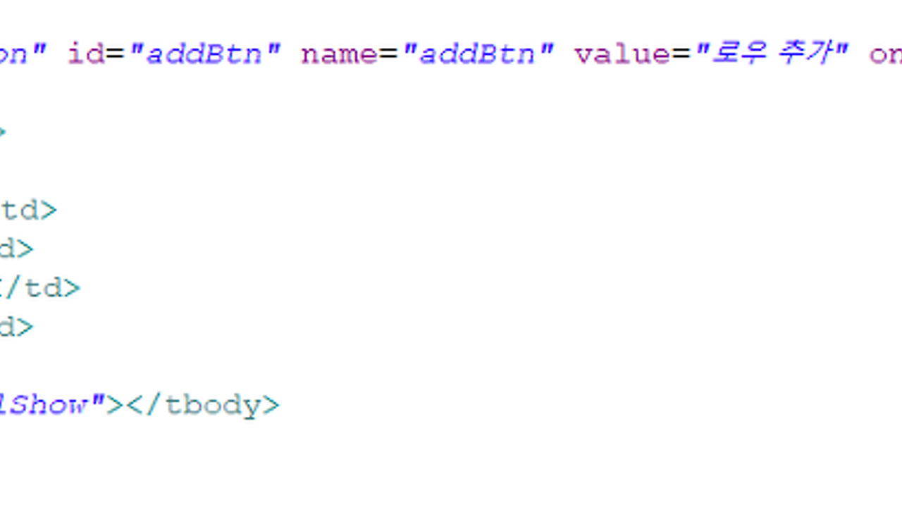 HTML에서 table, tbody, tr, td 를 이용해 간단하게 표를 만들고 버튼을 눌러 행을 추가하는 기능을 만들어보자. 일단 행을 추가해줄 버튼과 아이디, 이름, 전화번호, 주소를 td 태그를 이용해 만들어 주자.이제 "로우추가" 라는 버튼을 누르면 행이 추가될 수 있도록 function을 만들어주자. 간단하게 insertRow() 를이용해 행(로우)을 추가할 수 있다.insertCell() 은 열을 추가하는 것인데 insertRow 가 tr 태그를 추가하는거라면inserCell은 td 를 추가하는 것이다.innerHTML을 이용해 input 태그를 넣어줬다. 로우추가 버튼을 누르면 아래와같이 로우가 추가되고innerHTML을 이용해 input 태그가 들어가 있는 상태이므로아래처럼 값을 입력할 ..