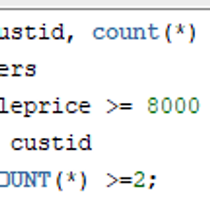 이번엔 HAVING 절에 대해 알아보겠습니다.HAVING 절은 GROUP BY 절의 결과 나타나는 그룹을 제한하는 역할을 합니다. 예를 들어주문 도서가 두 권 이상일 경우만 출력하려면아래와 같이 작성 해야합니다 HAVING 절을 사용하지 않으면 위와같은 결과가 나옵니다. WHERE절과 HAVING절이 같이 포합된 SQL문은검색 조건이 모호해 질 수 있습니다.때문에 HAVING 절은 반드시 GROUP BY 절과같이 작성해야 되고 WHERE절 보다 뒤에 나와야 합니다.또한 검색조건에 SUM, AVG, MAX, MIN, COUNT와 같은집계 함수가 와야합니다. 출처:오라클로 배우는 데이터베이스 개론과 실습(한빛아카데미)