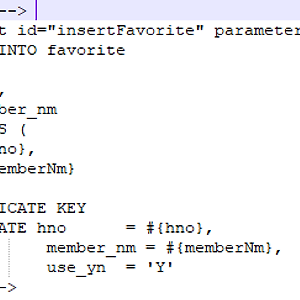 요즘 MariaDB 쿼리를 오라클 쿼리로 바꾸면서배우는게 많은것 같다.이번엔 MariaDB에서 ON DUPLICATE KEY 를 오라클에서사용하기위해 바꿔 보겠다. 먼저 내가 바꾸려고 했던 MariaDB를 보자대부분 ON DUPLICATE KEY 를 사용하기 위해선아래와 구성이 비슷할 것이다. ON DUPLICATE KEY 에 대한 구성과 기능을 알아보자. INSERT INTO로 favorite 라는 테이블에 데이터를 삽입하려 한다.hno, member_nm 이라는컬럼에 VALUES로 파라미터값 #{hno}, #{memberNm}의 값을 넣는다. 이때 hno와 member_nm에 이미 값이 들어있다면ON DUPLICATE KEY 가 쓰이게 된다. ON DUPLICATE KEY 를 사용하여 만약 INSER..