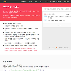 회원가입을 할 때, 물건을 구입할 때 주소를 거의필수적으로 쓰게 된다. 이때 우편번호 찾기에서자기 주소와 우편번호 등을 작성하는데 이번포스팅에서이것을 직접 구현해보자. 먼저 우편번호 찾기를 구현할때 쓰는 API는 여러가지가있는데, 그 중, 나는 다음 우편번호 API를 쓸 것이다. 다음 우편번호 API를 선택한 이유는 다른 우편번호 API들 보다사용하기 쉽고 활용도가 좀 더 좋다는 생각이 들어서 이다.또한 현재 운영하는 티스토리 블로그가 "다음" 것이기 때문이다... 먼저 다음 우편번호 API를 제공하는 사이트를 들어가보자.http://postcode.map.daum.net/guide 사이트는 위 처럼 생겼다. 이 사이트에서는 우편번호 찾기 API를 쉽게 사용할수 있도록보기 좋게 설명되어있다.처음 기본사용..