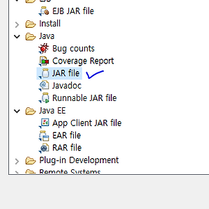 이제 저번 포스팅에서 만든getMessage.java 클래스를 jar파일로만들어 lib 에 jar파일을 넣고 실행을 해보자 우선 아래처럼 java 파일을 선택후 Export 해준다. 다음 JAR file을 선택해 Next해준다. JAR file이 없다면위 Select an export destination 에서검색을 해준다. 다음 아래처럼 해당 패키지를 클릭하면 오른쪽에 패키지 안에 존재하는java파일들이 보이며원하는 java파일을 선택해 Finish를 눌러준다JAR 파일이 생성될 경로도 정해준다. 아래처럼 jar파일이 생성된것을 볼 수 있다. 이제 생성한 jar파일을 아래처럼이클립스의 WEB-INF/lib 경로에 넣어준다.다음 test 패키지 안에있는 getMessage.java 파일을삭제해준다. 이제..